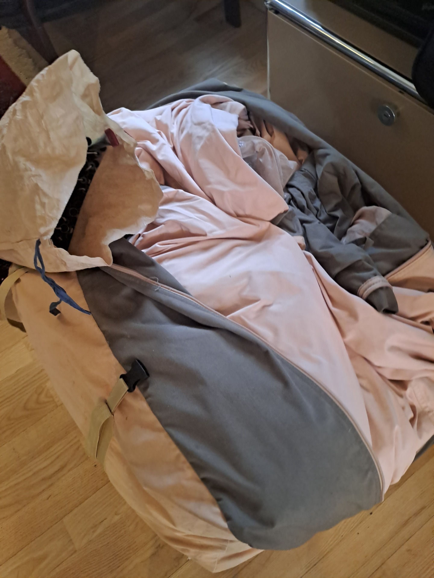 Her tester jeg det nye teltet, Det er litt jobb å sette opp, så jeg er glad det kan stå fast i høst. Det krever to personer for å tre inn de lange stengene i teltet.