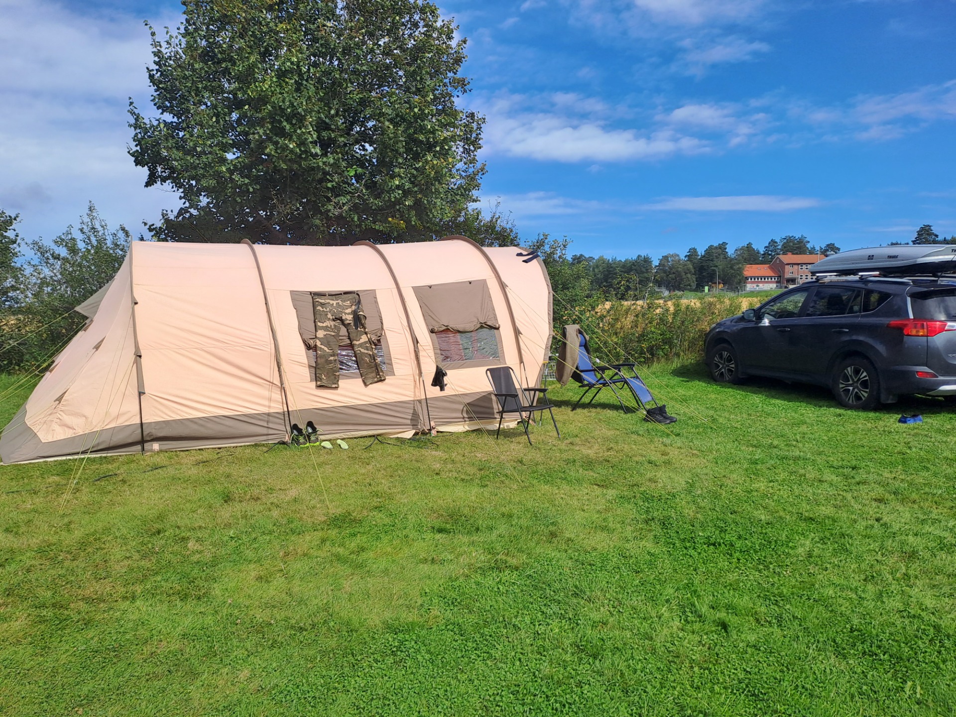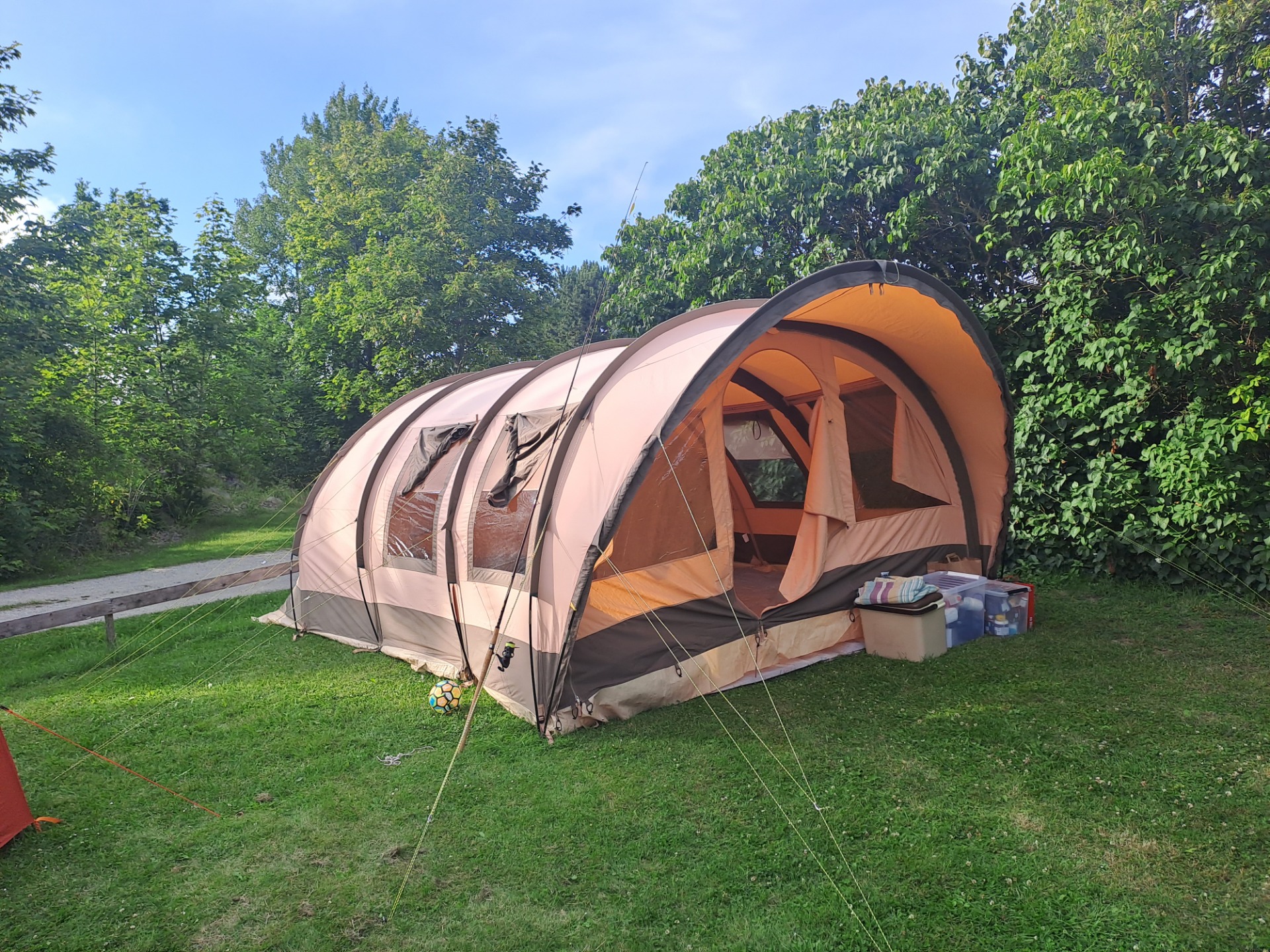 Teltet er ett nederlandsk tunneltelt av typen stor. Det veier minst 40 kg.